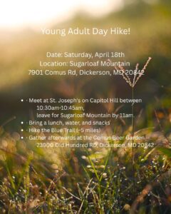 Come join the Young Adults on a hike to Sugarloaf Mountain in Maryland on Saturday,... Read More >