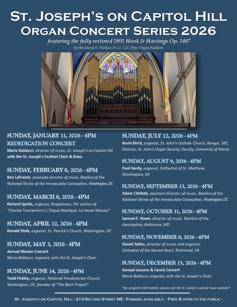 As St. Joseph’s offers a monthly organ concert series in 2026 to celebrate our restored Hook & Hastings organ, we invite you to consider sponsoring or co-sponsoring one of these concerts.